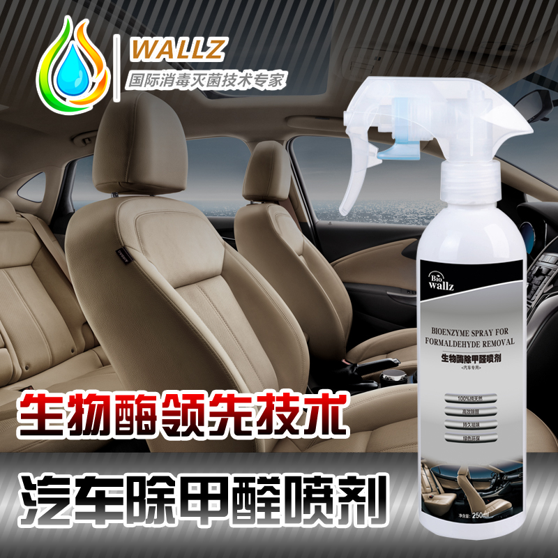 wallz 汽車除甲醛噴劑,利用除甲醛專用生物酶及植物提取液,降解甲醛分子,使之生成無毒害的物質,擁有24小時長效保護,時效可長達30天,安全無毒,無刺激性氣味,無腐蝕性,能持續殺滅98%以上的細菌和清除90%以上的甲醛異味,防止交叉感染,本產品只含有純天然生物活性物質,高效除醛,持久祛味,綠色環保,母嬰安全,是保持您車內環境干凈清新的最佳選擇。