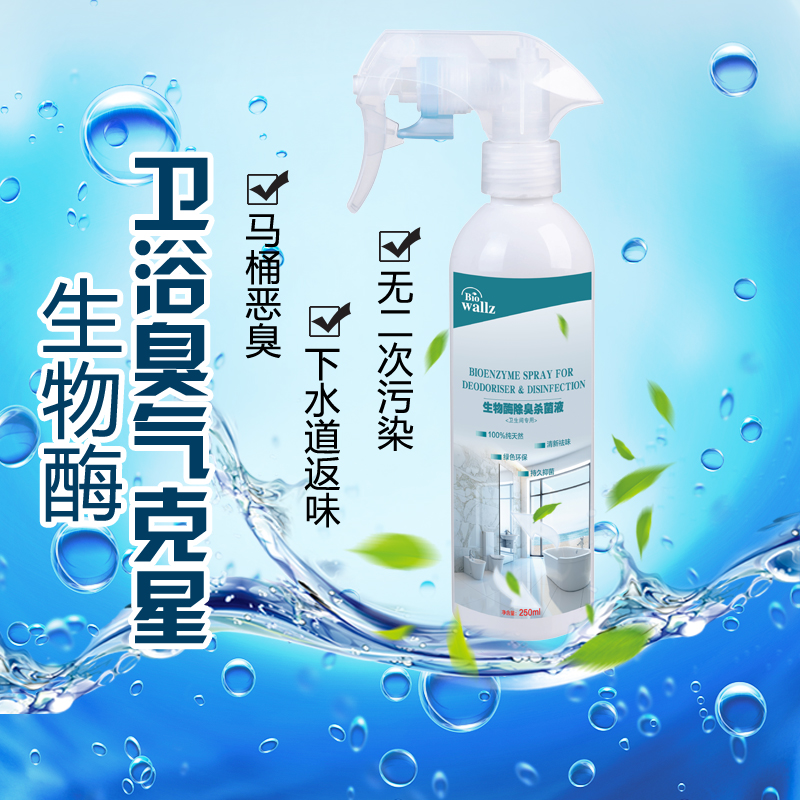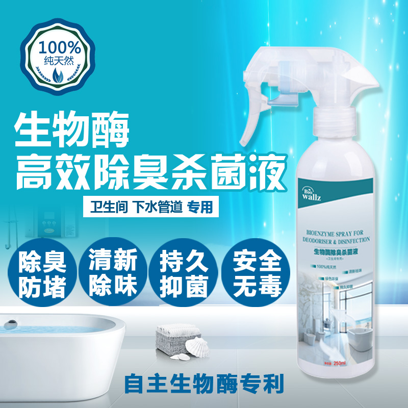 wallz 衛(wèi)生間除臭殺菌液,利用專用生物酶及植物提取液降解尿氨、分解氨氣、硫化氫、甲硫醇、甲硫醚等惡臭物質(zhì),生成無毒無味的分子,能夠廣譜殺滅細(xì)菌、病毒、霉菌、真菌等各種頑固細(xì)菌,并抑制腐敗病原微生物生長。本產(chǎn)品只含有純天然生物活性物質(zhì),高效殺菌,持久祛味,母嬰安全,綠色環(huán)保,提高衛(wèi)生間居室環(huán)境空氣質(zhì)量,起到殺菌除臭和阻止管道阻塞的功效,是您家居健康的最佳選擇。